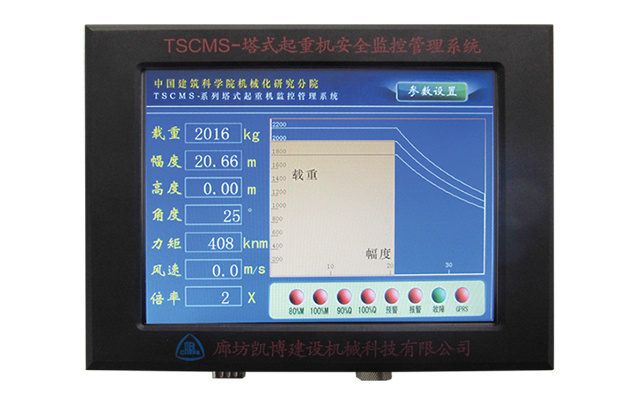 實時顯示監控塔機高度、幅度、起重量、回轉角度、環境風速及倍率等工作信息,對危險動作提供預警報警及控制輸出。